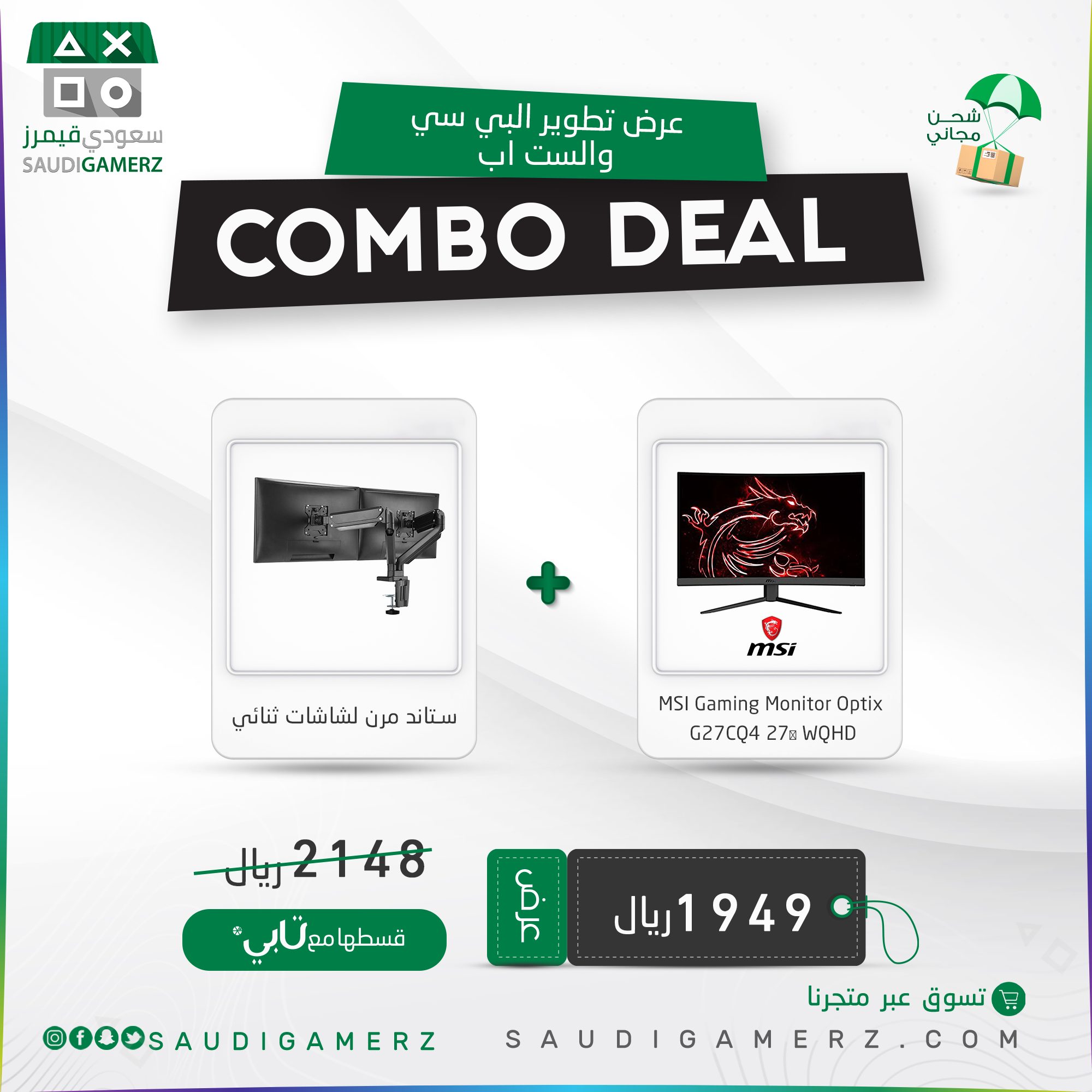 شاشة MSI Gaming Monitor Optix G27CQ4 27″ WQHD ➕ ستاند مرن لشاشات ثنائي