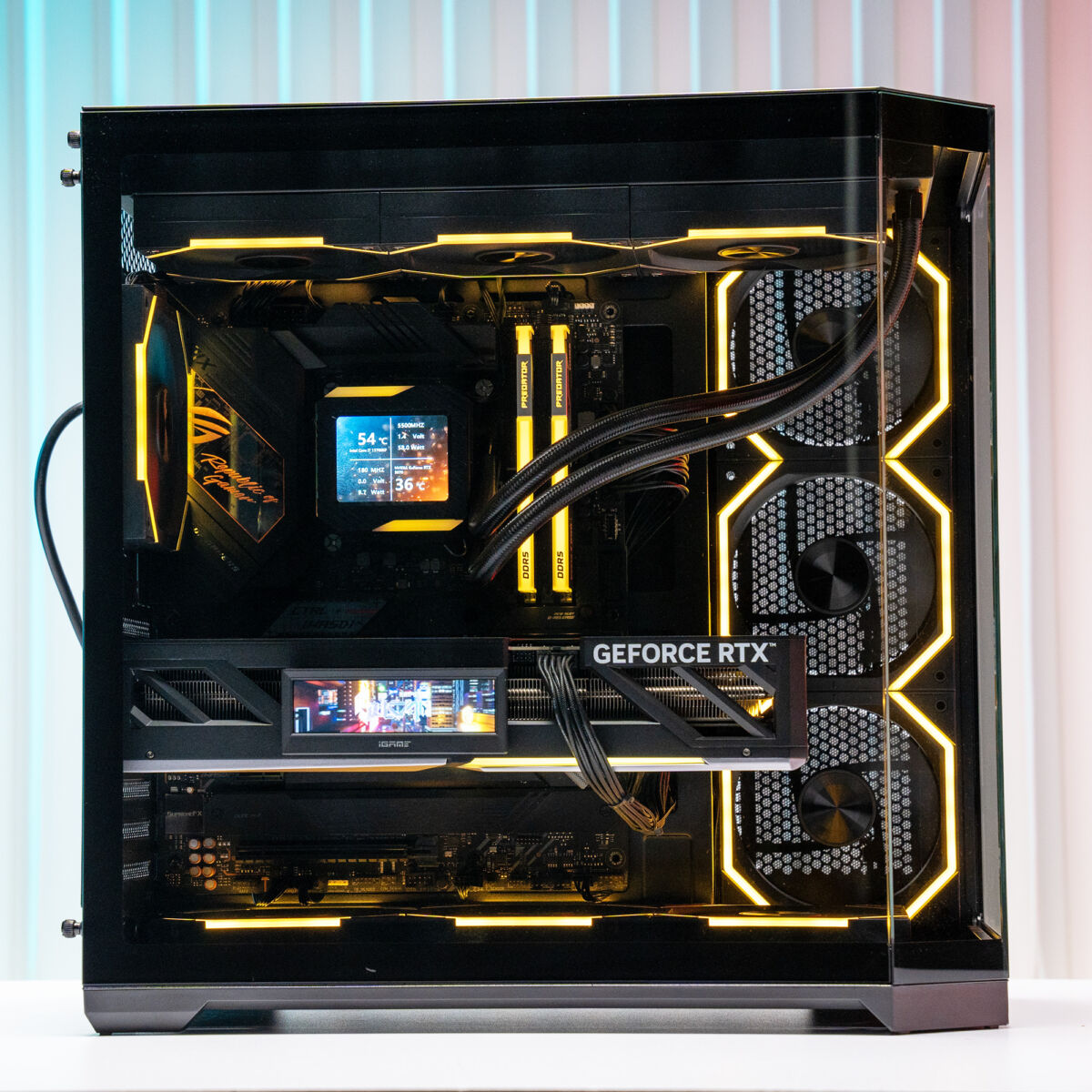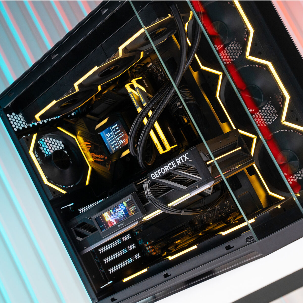 يأتي الكيس مزوداً بنظام تبريد فائق الكفاءة يضم أربع مراوح Galaxy مثبتة مسبقاً، تتميز جميعها بتقنية ARGB (الإضاءة القابلة للتحكم الفردي والتزامن). يعمل هذا التكوين على توليد تدفق هواء مثالي (Airflow) عبر جميع المكونات الحساسة، مما يضمن ثبات الأداء ويطيل العمر الافتراضي للجهاز حتى تحت أقصى الأحمال الحرارية. يمكنك تخصيص تأثيرات الإضاءة لتعكس ذوقك الشخصي وتجعل جهازك محور الاهتمام.