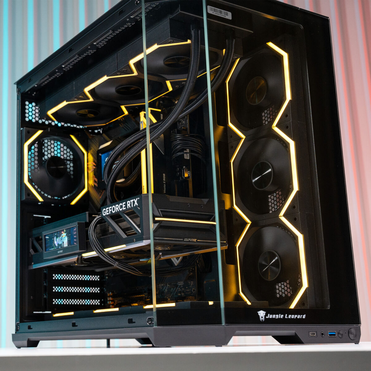 ارتقِ بتجربة تجميع حاسوبك إلى مستوى جديد مع كيس Jungle Leopard AS-01 Galaxy. يجمع هذا الهيكل بين الفخامة البصرية والأداء الحراري فائق الكفاءة، ليصبح أساسًا مثالياً لأقوى منصات الألعاب والعمل الاحترافي.