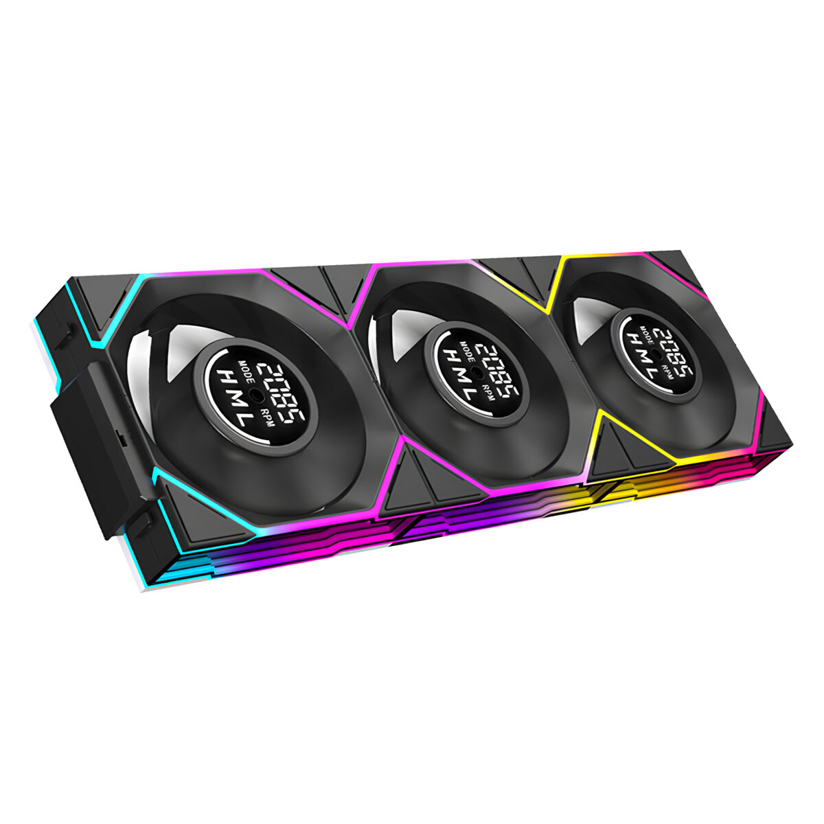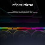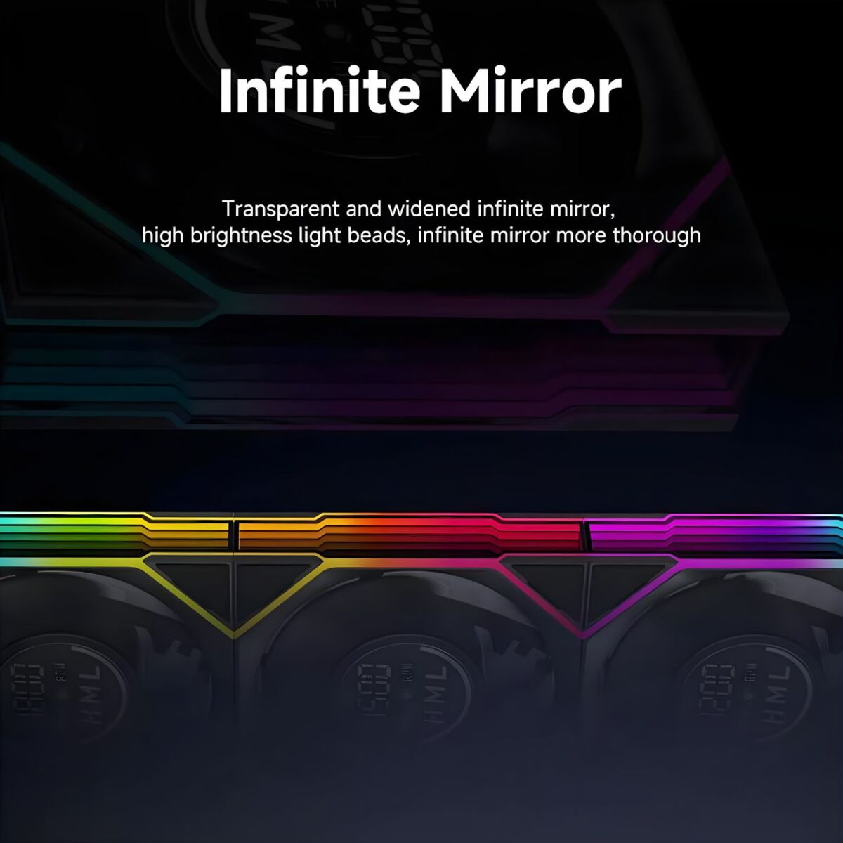 تأثير المرآة اللانهائية (Infinity Mirror): تحتوي جوانب المروحة على إضاءة ARGB متزامنة مع تأثير مرآة لانهائية، مما يعطي عمقًا بصريًا مذهلاً للإضاءة.