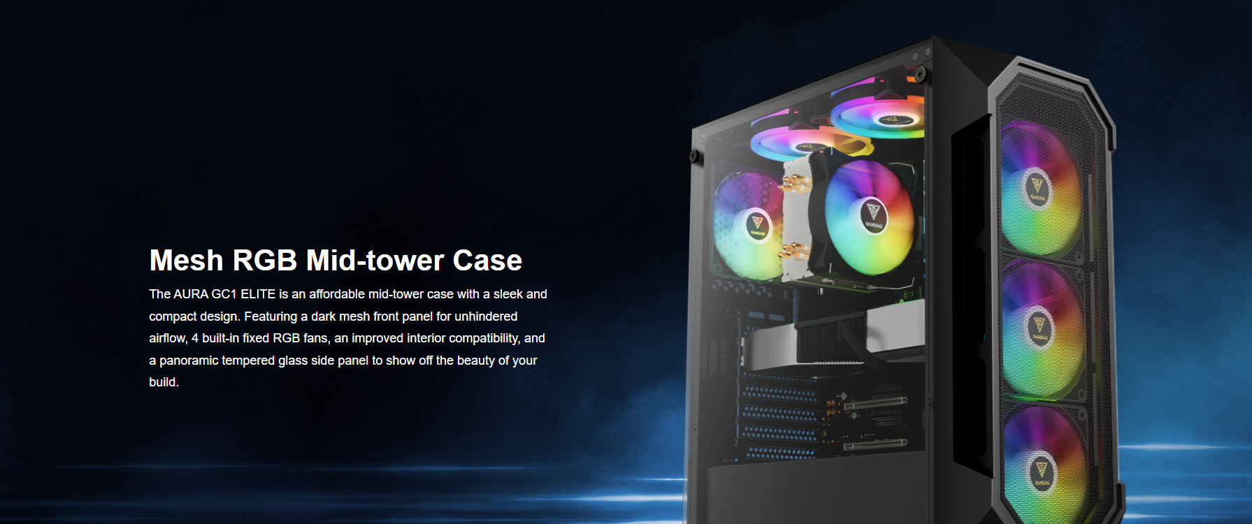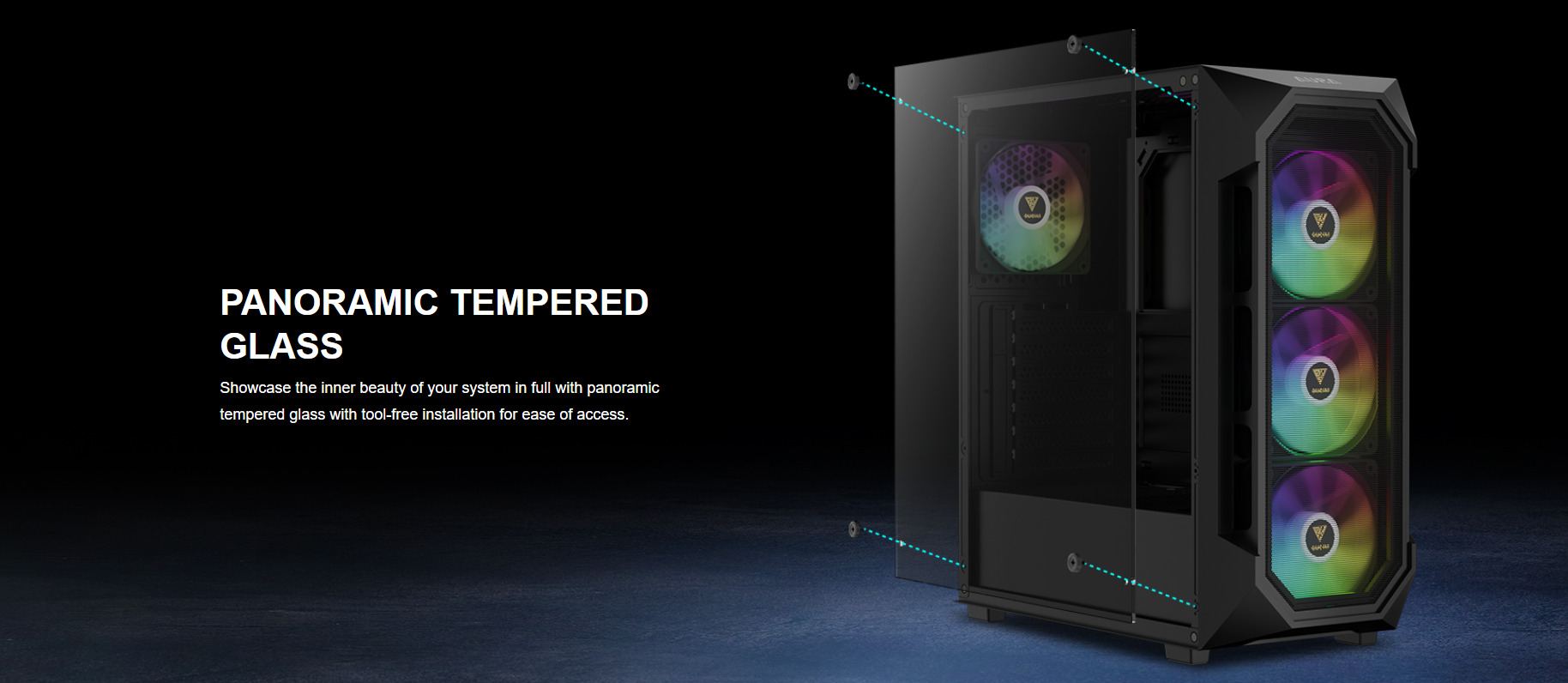 ثيرمو كيس بي سي مع شاشة 6.5 انش قابلة لتخصيص ريباند RD04 زجاج مقوى ATX ميد تاور مع 4 مراوح مقاس 120 ملم – لون أسود