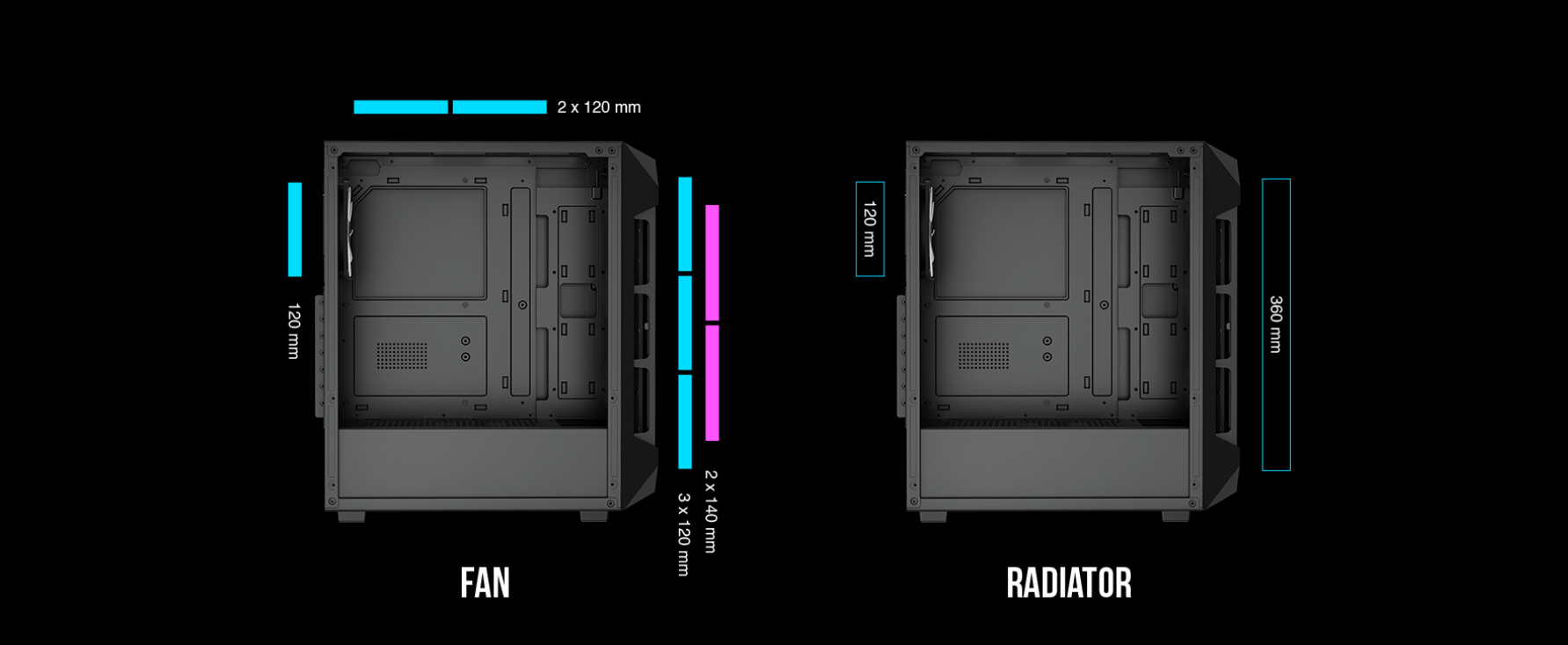ثيرمو كيس بي سي احترافي آتاك AK06 زجاج مقوى ATX فل تاور مع 5 مراوح مقاس 140 ملم مع شاشة 8.8 انش قابلة لتخصيص – لون أسود