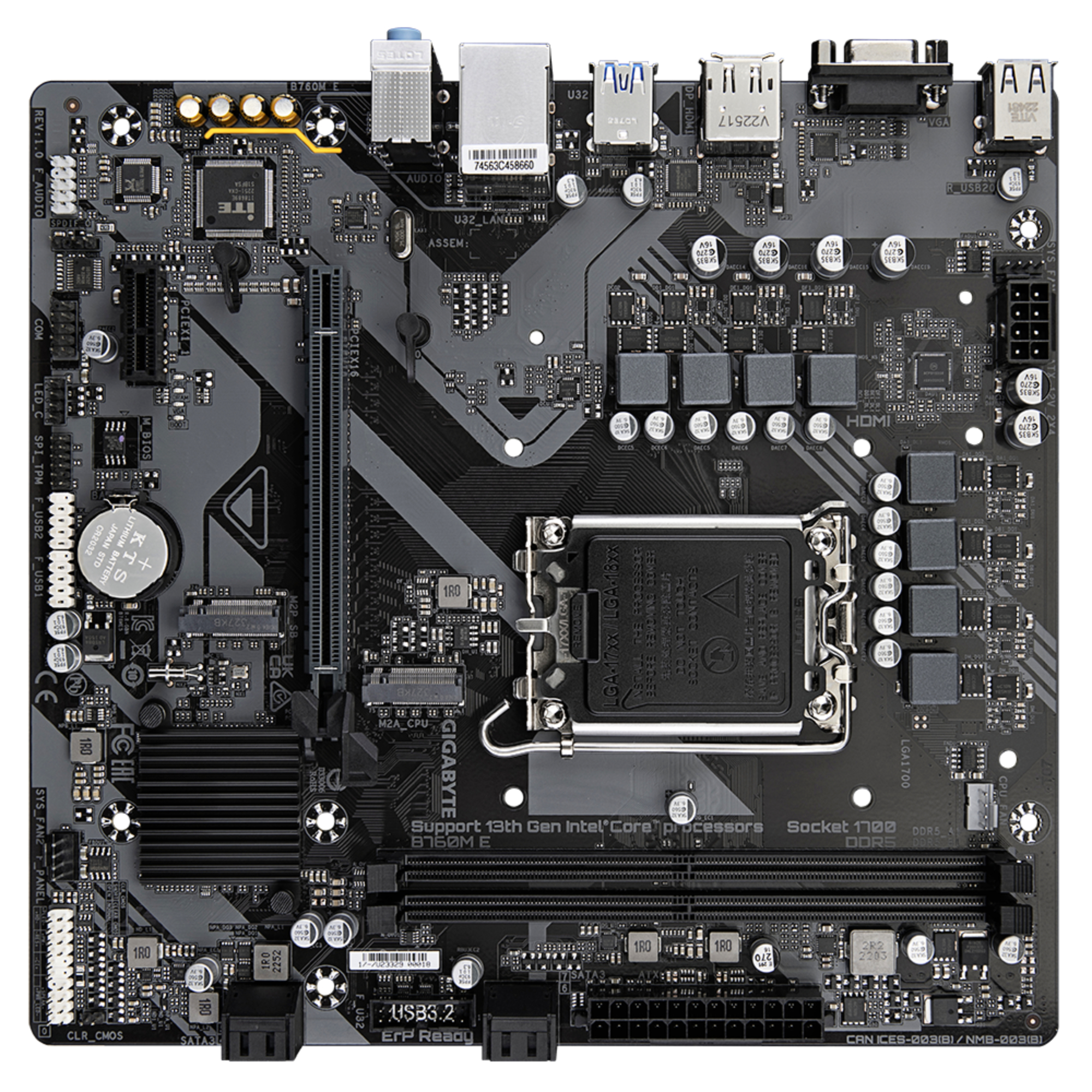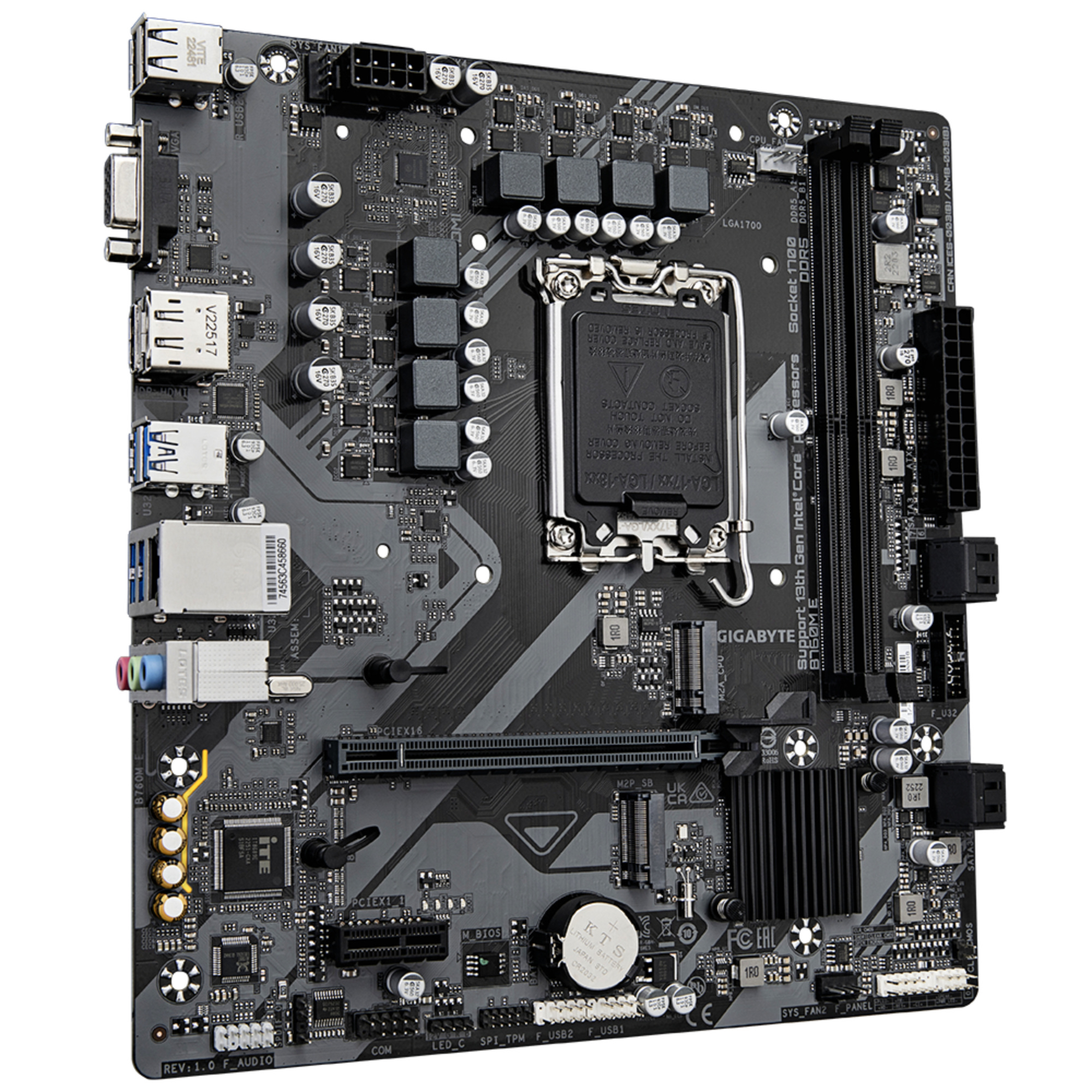 اللوحة الأم GIGABYTE B760M E (rev. 1.0) هي لوحة أم صغيرة الحجم بتصميم Micro ATX، تستند إلى شريحة Intel B760 Express Chipset، ومصممة لدعم أحدث معالجات إنتل.