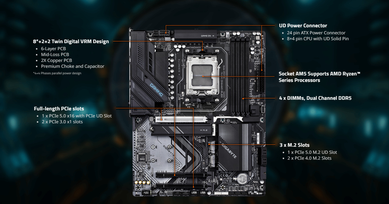 GIGABYTE X870 GAMING WIFI6 (rev. 1.x) Key Features | Motherboard
