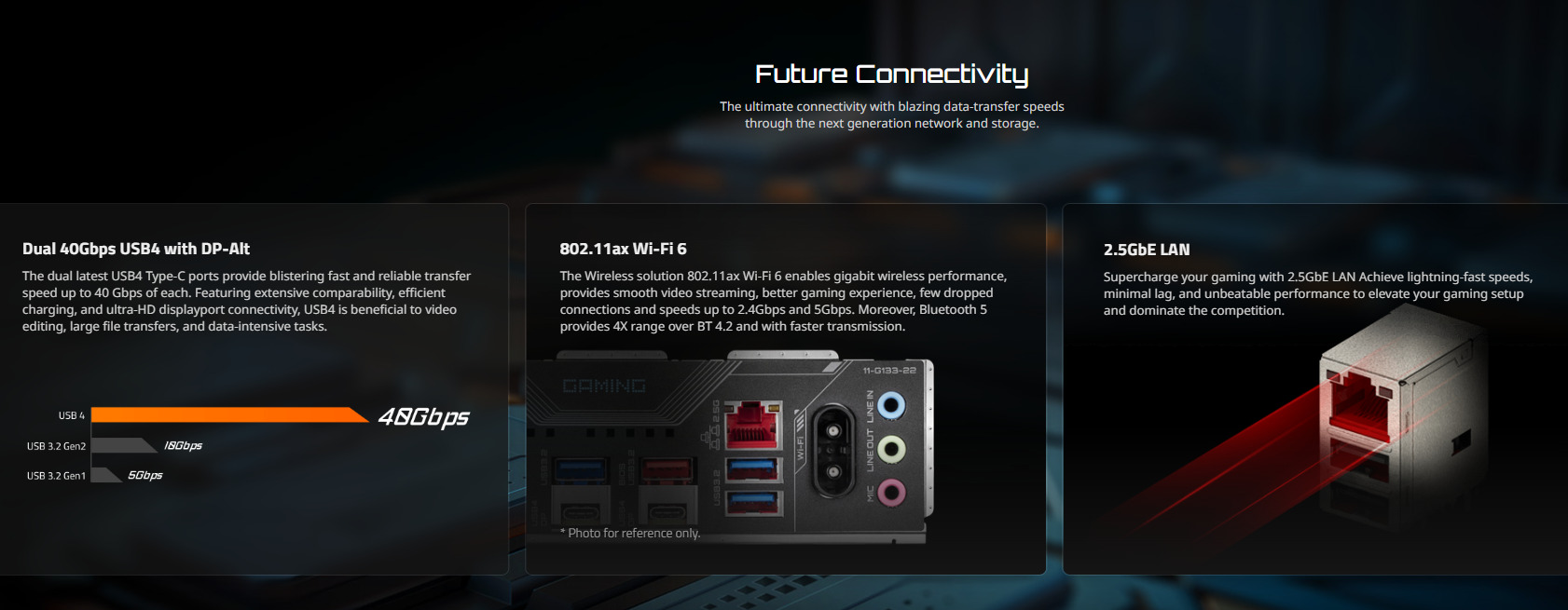 تتبنى اللوحة معايير الجيل التالي لتوفير أقصى سرعات في التخزين وبطاقات الرسوميات: